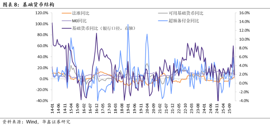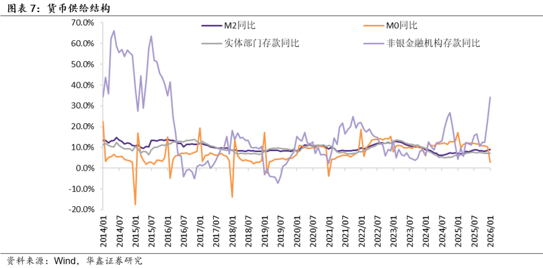 从基础货币供给的角度来看,2026年1月末其余额同比增长1.9%,前值同比增长8.5%。