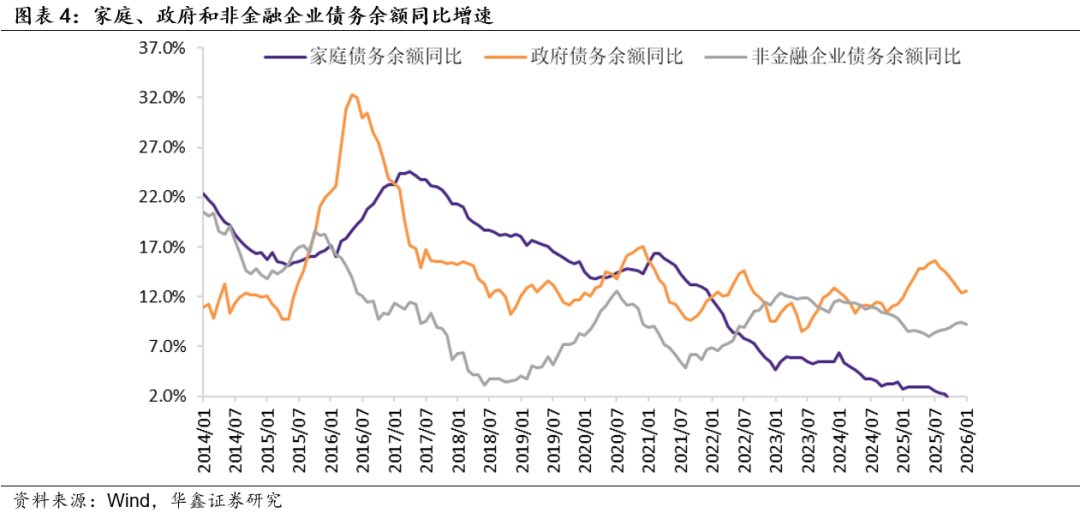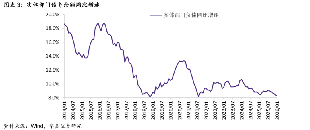 (2)稳定宏观杠杆率政策目标不变。2026年政府工作报告明确指出:“使社会融资规模、货币供应量增长同经济增长、价格总水平预期目标相匹配。“这意味着2016年以来稳定宏观杠杆率的政策目标没有发生变化。